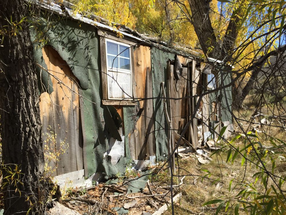这是一座废弃的小屋,轰然倾倒的枯树砸在屋顶上,紧临的另一个枯树令人毛骨悚然,树杈上悬挂着一根绳索,中间的U型扣环不竟令人联想到可怕的凶宅。