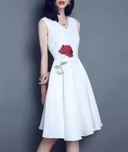 普普通通的白色连衣裙因一朵出其不意的红色花蕾而妖媚