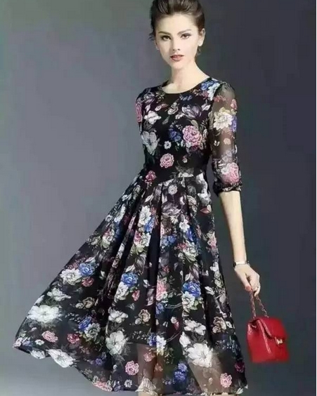 黑色纱裙上花开荼蘼,蓝色的白色的粉色的惊艳