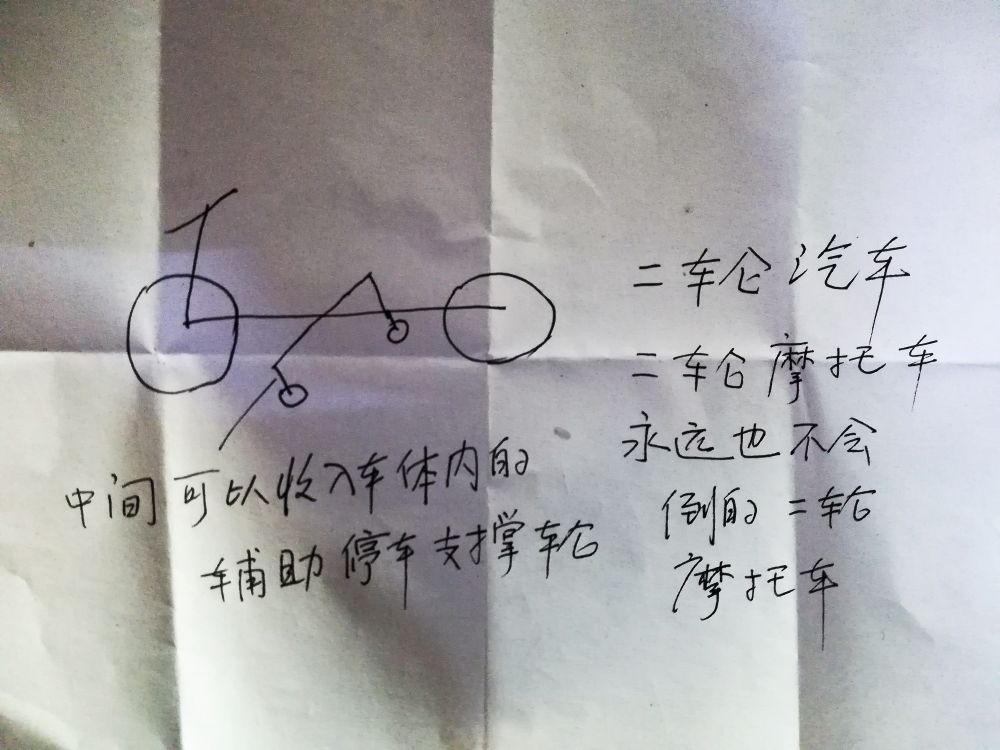 3、中间可以收入摩托车、车体的、辅助、停车、支撑轮。