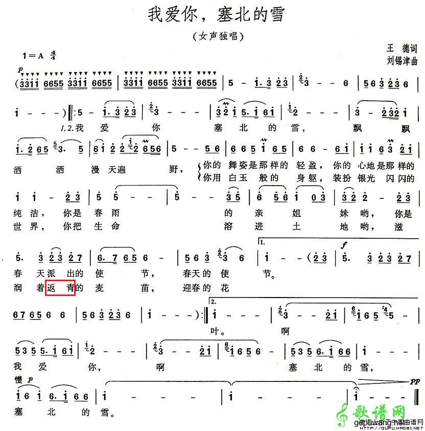 ·我爱你塞北的雪(歌曲原唱)》和《百度知道·我爱你塞北的雪歌词》都把歌