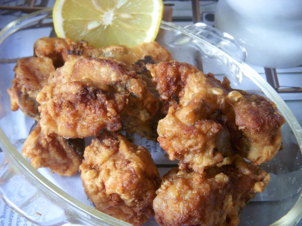 酥炸鳕鱼:用酱油,料酒和姜末腌制30分钟,加面粉薄薄地裹着表面,滚油中火至金黄。成品香酥可口。