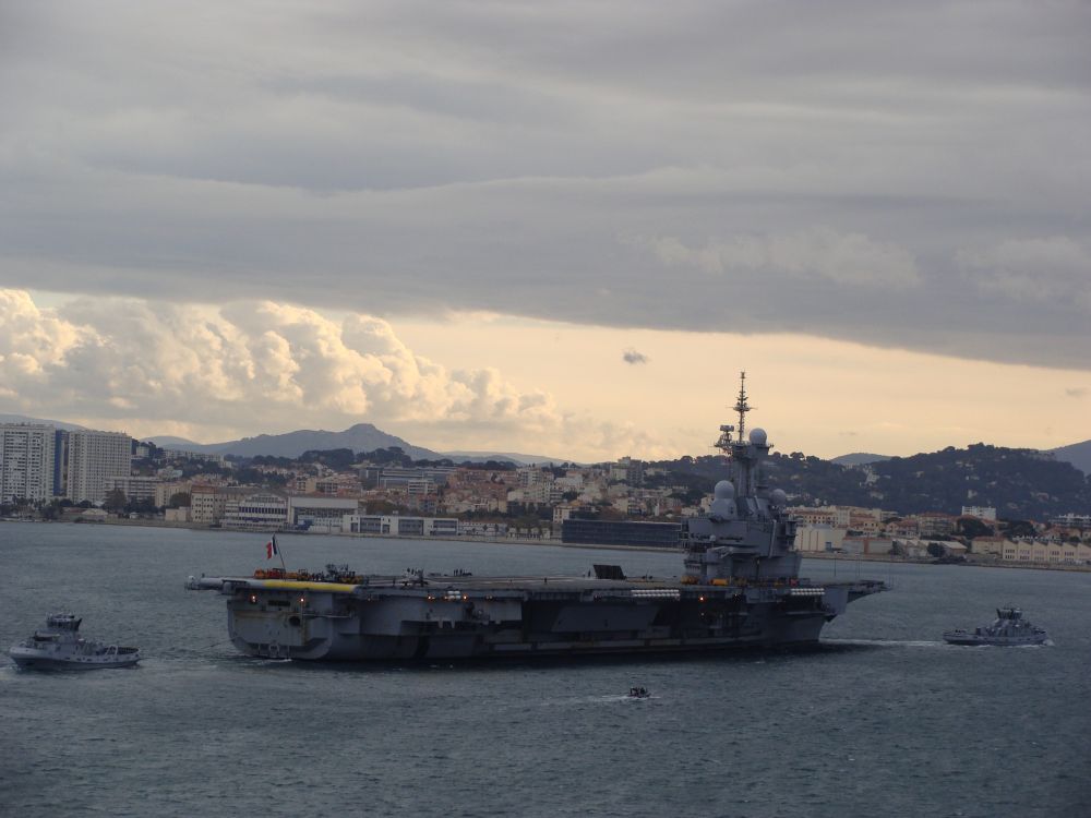 回来后的某天,接到和我一起拍照的同伴电话,很兴奋地说你知道吗我们看到的那艘舰艇真的是航母耶。原来她回来后整理照片,特别将那艘军舰舰体上的舰名放大询问她的孩子,这一问才知道是法国有名的戴高乐号航母。兴奋之余,赶紧去问狗,一下狗出了许多有关这艘航母的信息,其中法国”戴高乐”号航母维修后从新出海训练,不会影响在印度洋执行打击海盗的任务。我看到它的那天就是完成维修后刚刚从土伦港出海训练。当然我的同伴也被我们适时地揶揄了一番,哈哈哈…