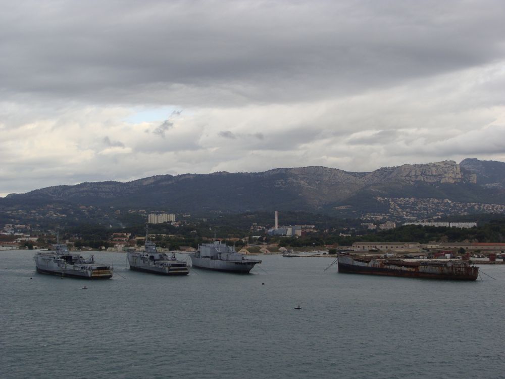 每年公司都会有一次出国旅行计划,这一年是乘地中海邮轮。 那天早上吃完早餐,从餐厅出来到甲板上,忽然看到一艘舰艇正在出港,舰前后都有小艇引导,舰有平平的甲板,上面还有飞机,很像航母,我很是兴奋,没想到能亲眼在海上看到航母,但舰艇不够巨大也令我产生了一点点怀疑,不管怎样,赶紧打电话招呼已经回船仓的好友,一惊一乍地让她以最快速度上夹板看航母,我和另一位同伴边等边拍照。一会儿,好友上来了,看了一眼舰艇,很不屑的说,这是登陆艇。她出来前生活在海南,而工作性质常需要接触海军,所以她对军舰并不陌生。她这一说我好像也觉得不是航母了,因为看上去舰艇并不大,不像我想像中的航母。所以她这一说,我也就没了兴趣,随便拍了几张照片,看到远处码头上趴着的舰艇,又抓了几张,这事似乎就这样过去了……