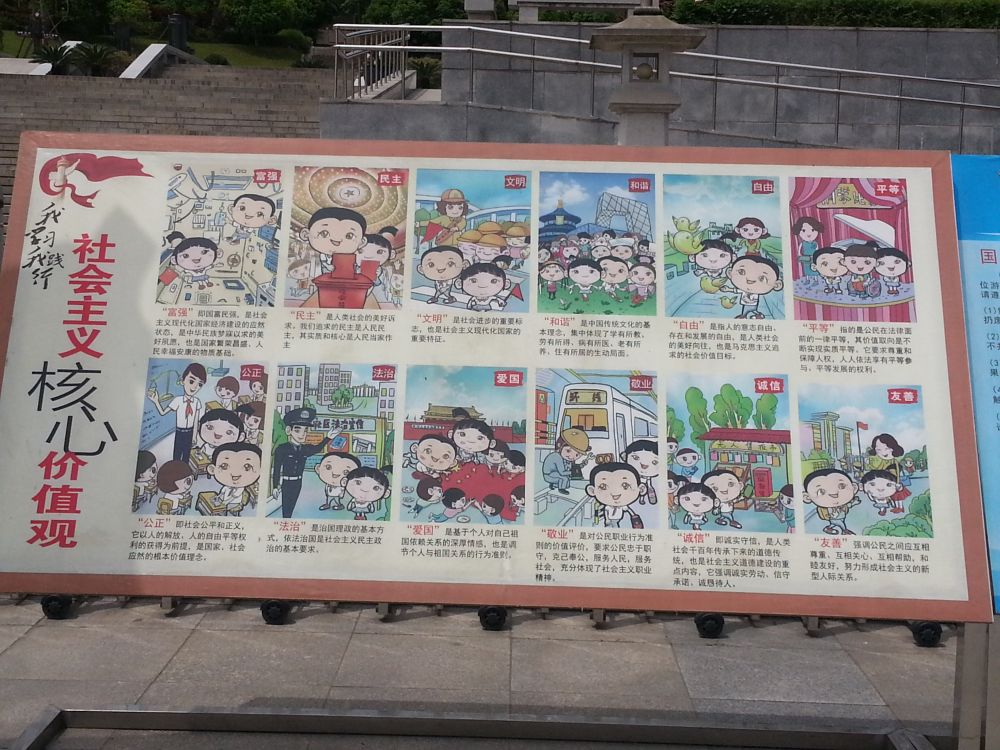 大门口贴着大幅的中国梦和弟子规宣传画报,与李白故园显得不伦不类。我也应景把古今口号如面团一样,揉在一起:心在朝廷,八荣八耻。名高天下,文明出遊。