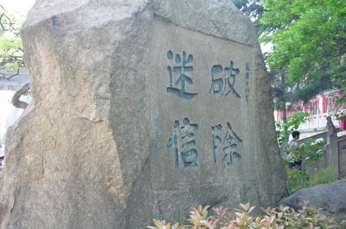 老冯贵为西北军阀,也端的有超前意识,在一座千年古庙里还提有“破除迷信”等字,简直是神勇的红卫兵提前降世了。