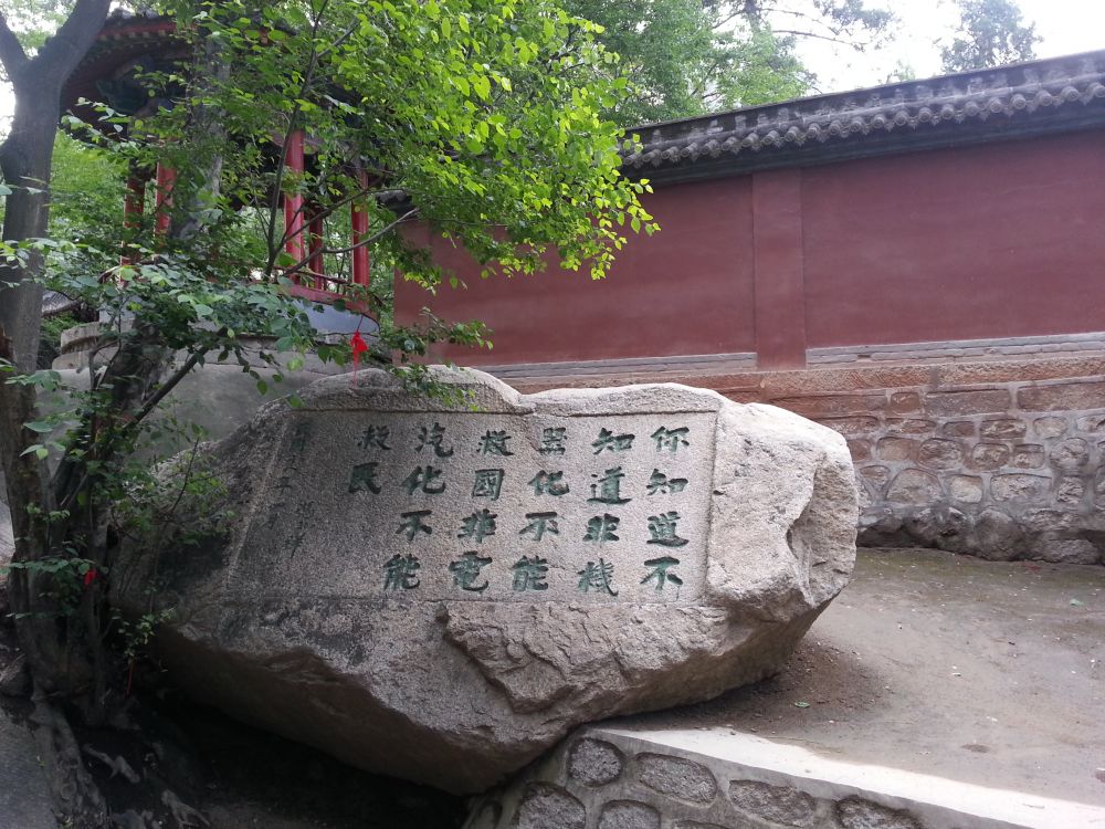 玉泉院庙前石阶旁边有块卧石,上面凿刻着倒戈名将冯玉祥于民国十八年的题字,看了一下,我不禁哑然失笑: