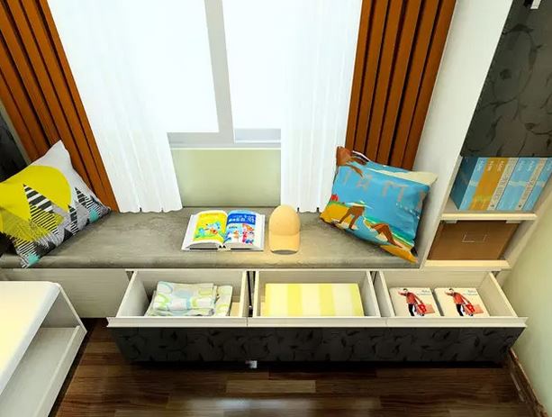 如果不喜欢大型榻榻米床,也可以在窗边装一个榻榻米卡座,收纳一些季节性电器、家具足够了。