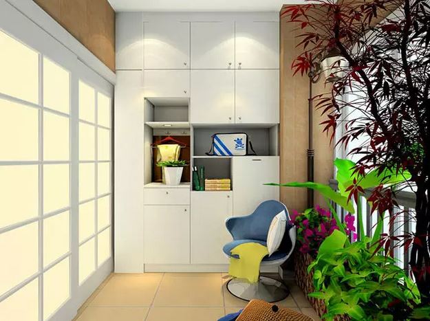 很多人都只把阳台用来晾衣服,但是房价这么高,单一功能无法做到物尽其用,在阳台一侧增加一个杂物柜,既不影响晾晒衣物,也能增加阳台面积的使用率。