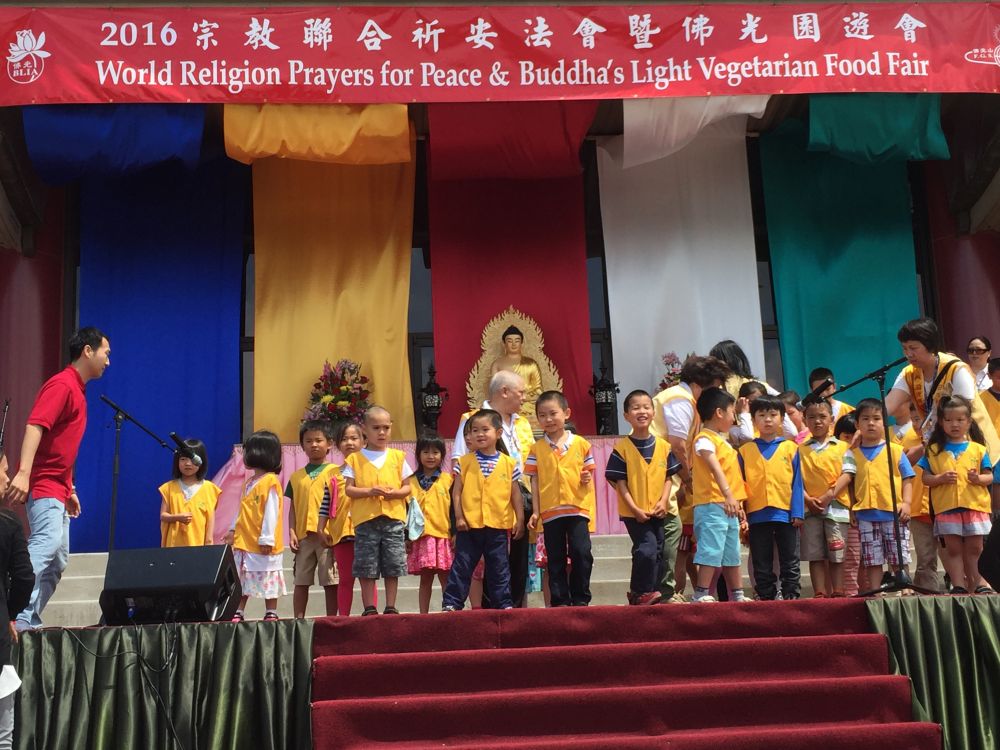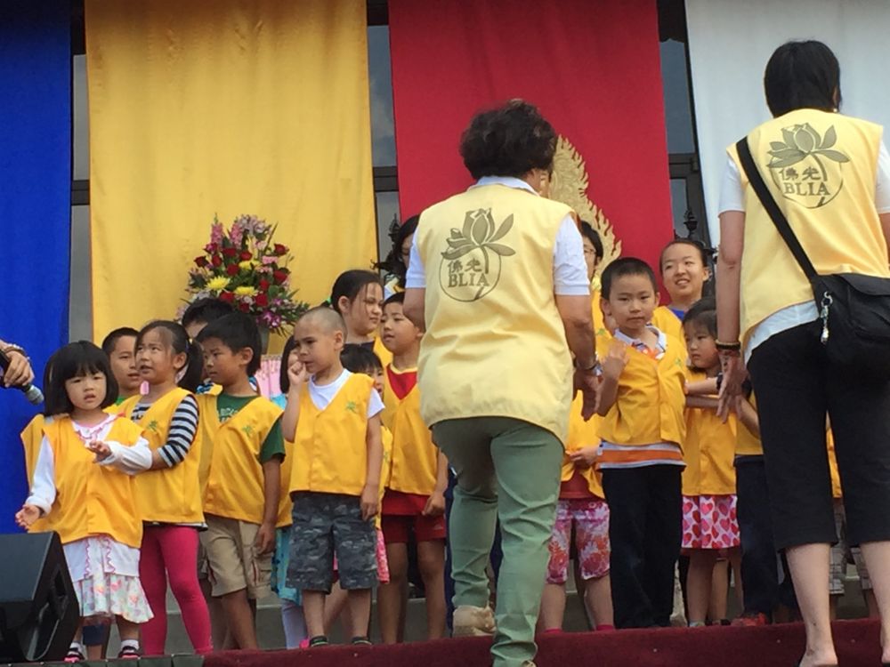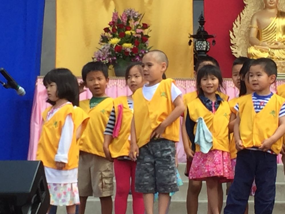佛光山中文学校2016年夏季游园会。照例小朋友们做表演。今年唱的是《心灯》。不过哪吒依然很害羞,不喜欢当众唱歌。