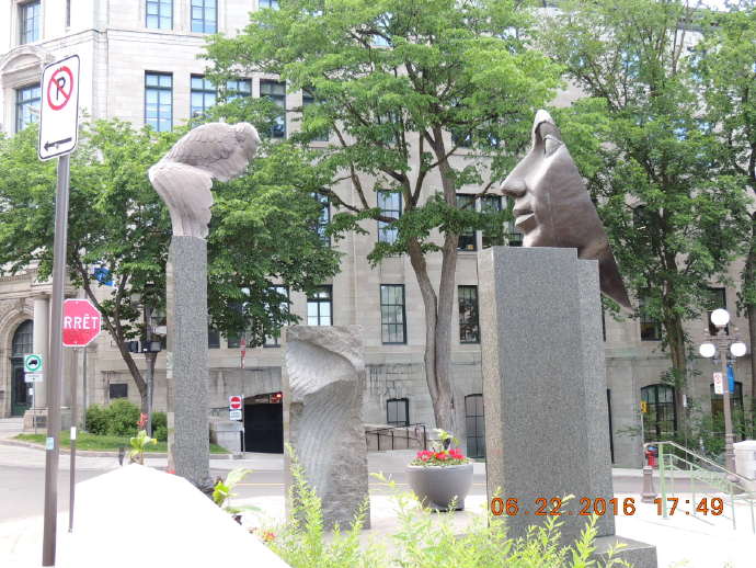一个法国小伙和正在散步的我打招呼。他土生土长于此,因为喜欢今天的云和温暖天气,步行了十几里,只是想在古堡附近的城墙边吹吹风,看看圣劳伦斯河上空的云。地地道道的法国人情怀!他见我对古城的历史文化感兴趣,热情地向我介绍一个个建筑物。真想多聊一聊,可惜到了该吃饭的时候。