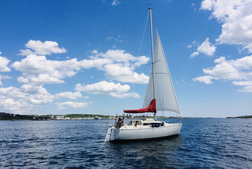 不远处,突然开过一条单帆船。高高的白帆随着海风舞动,小船儿稳稳地在水上漂游。一对情侣悠然自得地坐在船上望风景。那男的,时不时拉一下帆绳,控制小船方向。见我们雄伟的两用车路路过,潇洒地和我们挥挥手。