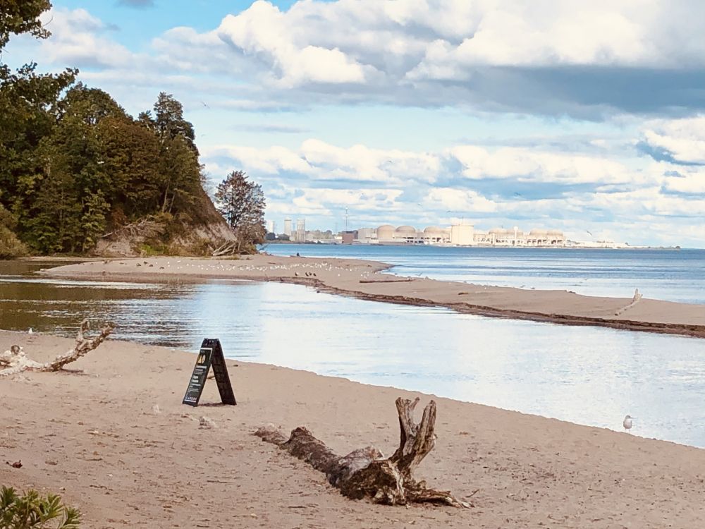 站在湖边望向前方。居然能看到湖那边的群楼,安省pickering的核电站。