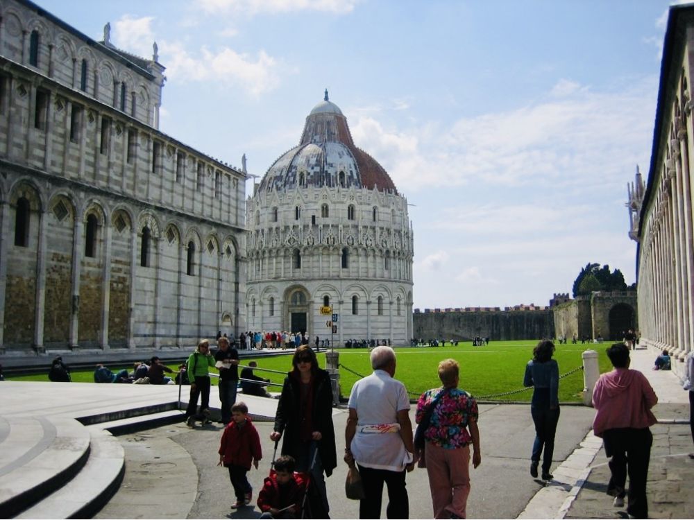 沿斜塔的方向,我们来到被列入世界文化遗产的比萨奇迹广场,原名主教座堂广场,作为海上共和国的比萨曾富甲一方的广场。