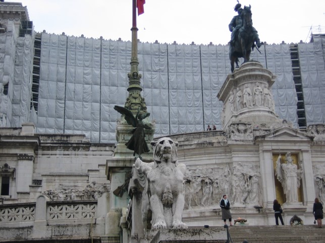 广场中心耸立着那座气宇轩辕的艾曼纽国王的骑马雕像。雕像下是为国捐躯的烈士们的墓碑,身着军服的卫兵威严地守在墓碑旁。