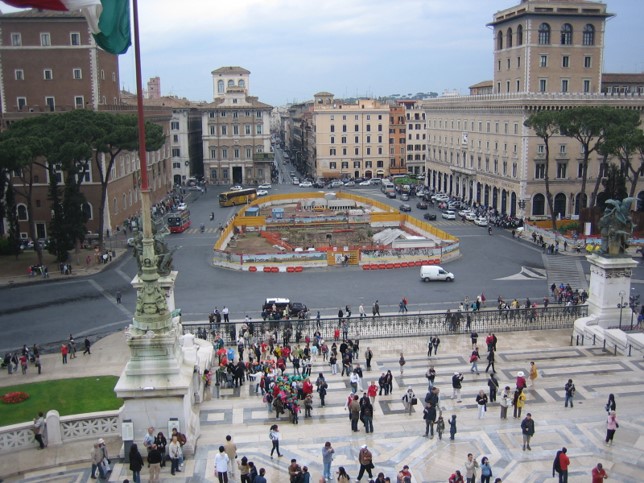 威尼斯广场位于卡比托利欧山的山脚,因附近的威尼斯宫得名。威尼斯广场堪称罗马城市中心,城市五条主要大街在此汇集,恰好应证“条条大路通罗马”的格言。
