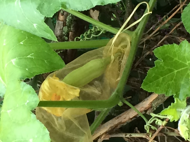 今天第一朵南瓜雌花开了,主茎上相隔4段又出现了第二个雌花,辣手把主茎的头打顶了。收拾了一块红薯叶的地段,把雪里蕻种了下去。明天准备种香菜和生菜。