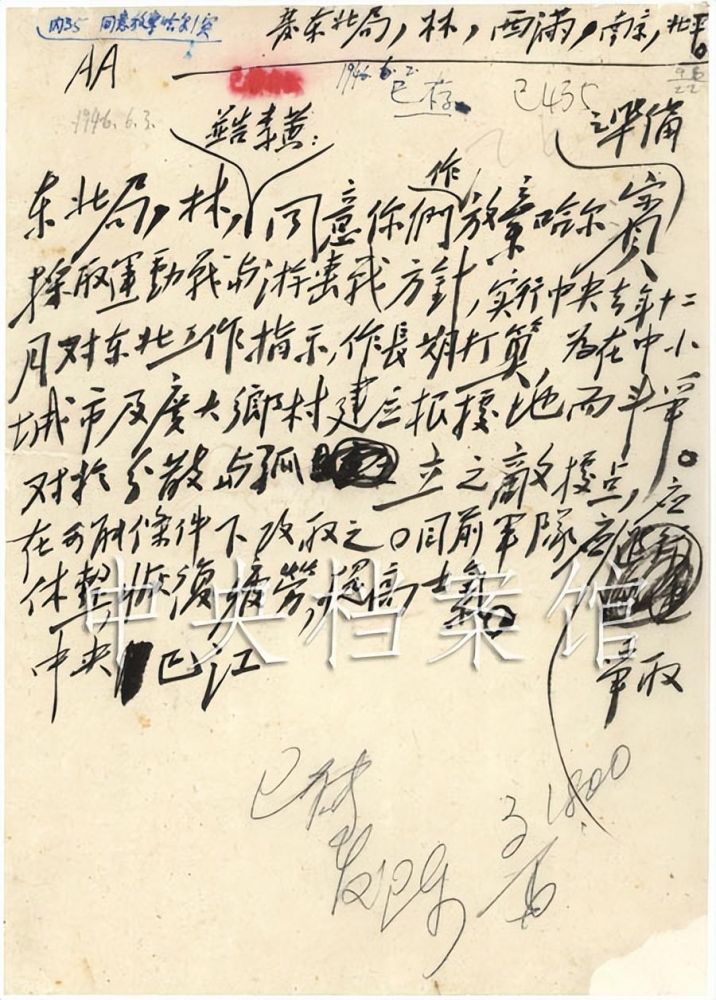这是中央档案馆复制的一批东北战役期间毛主席起草的电文稿,为便于大家欣赏内容,附上了电文的内容。