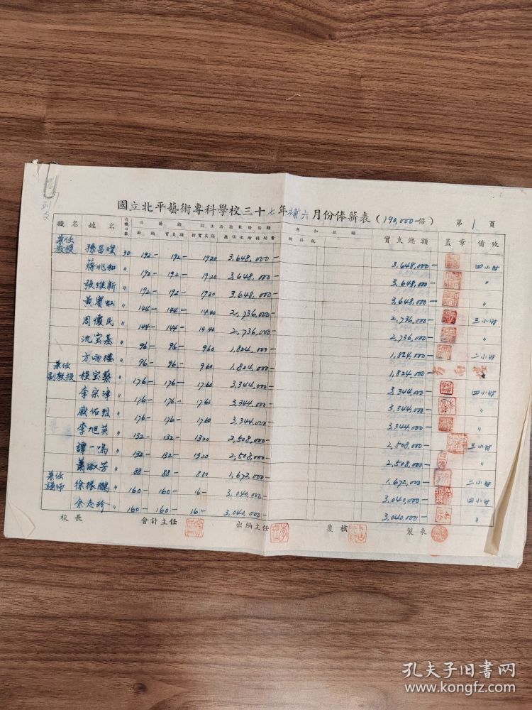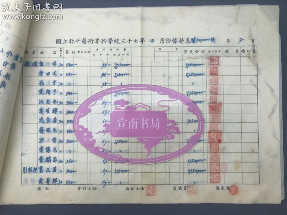 从北平艺专48年4月到48年7月的工资册可感受到物价飞涨速度:4月份物价指数是5万倍,6月份8万倍,7月份19万倍,工资都以千万计了。