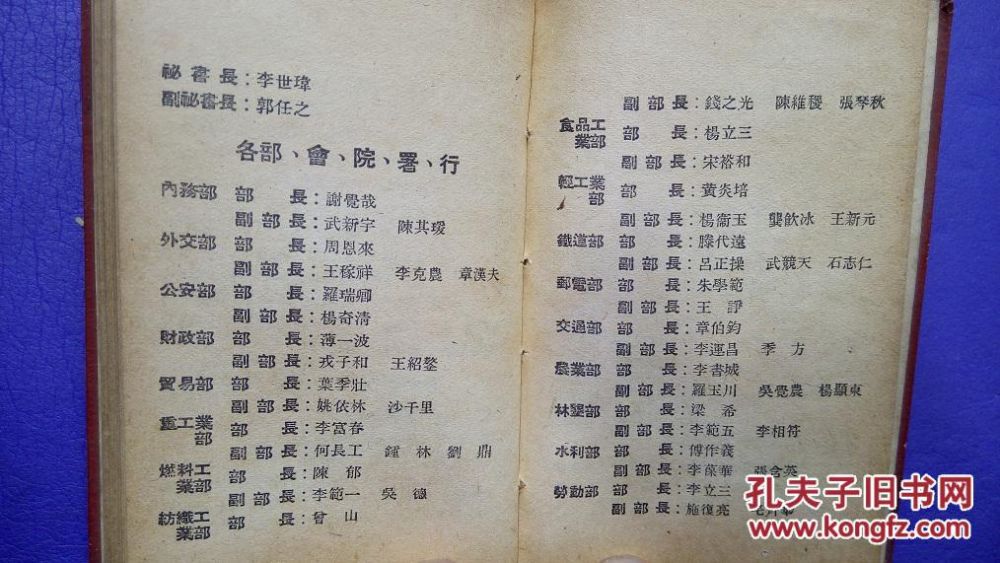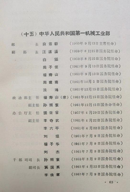 六十年代初国务院各部名册介绍