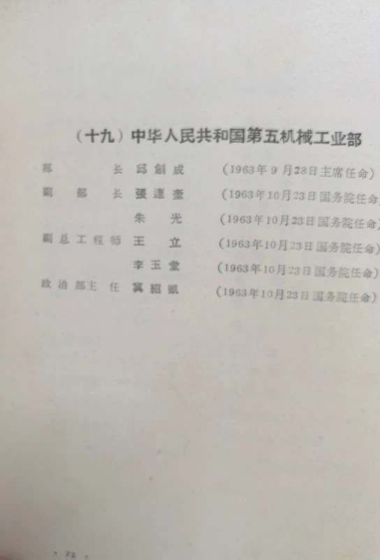 几个机械工业部,大小不等,一机部是原一机部和二机部合并起来的。二机部1956年11月重新建立,该名录上只有部长一人。五机部、六机部都是1963年9月刚成立,机构组建还没完备,只有3、5个负责人。农业机械部在1965年1月改名为第八机械工业部(八机部)。