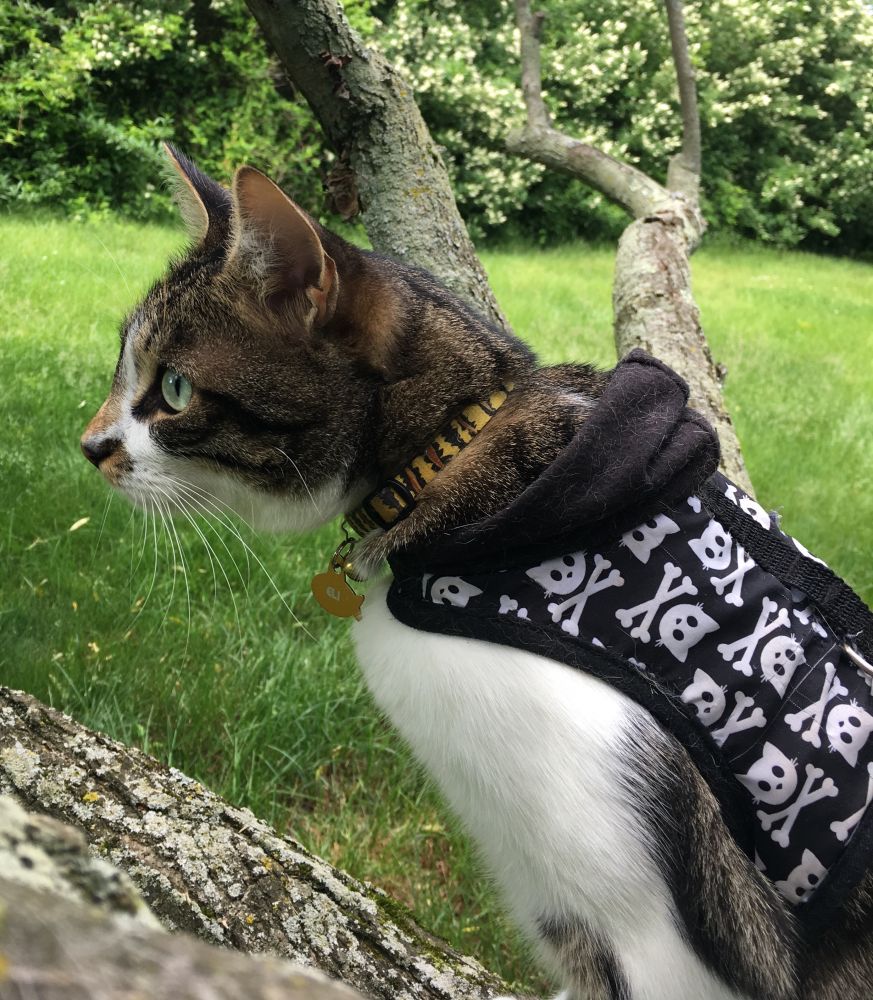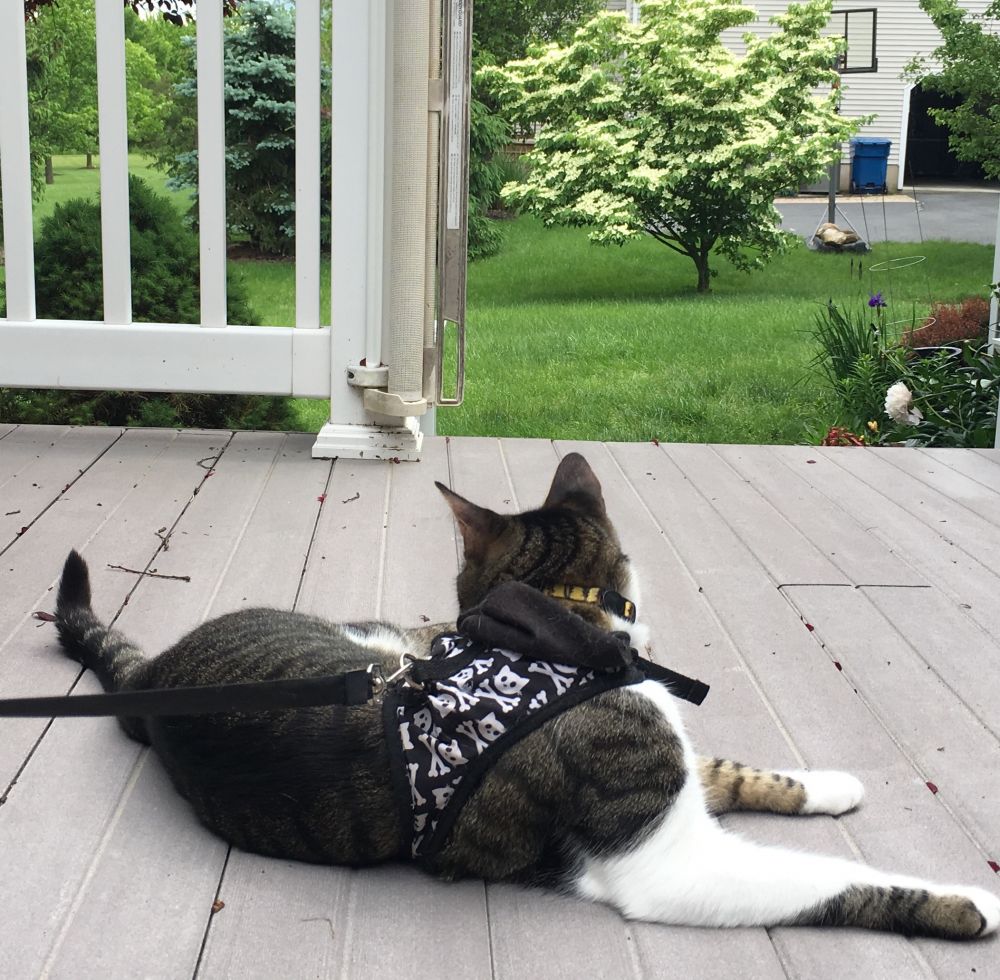 伊来每天早上起来就喵喵不停,要出去玩. 早晚两次,后院前院到处走一圈.有