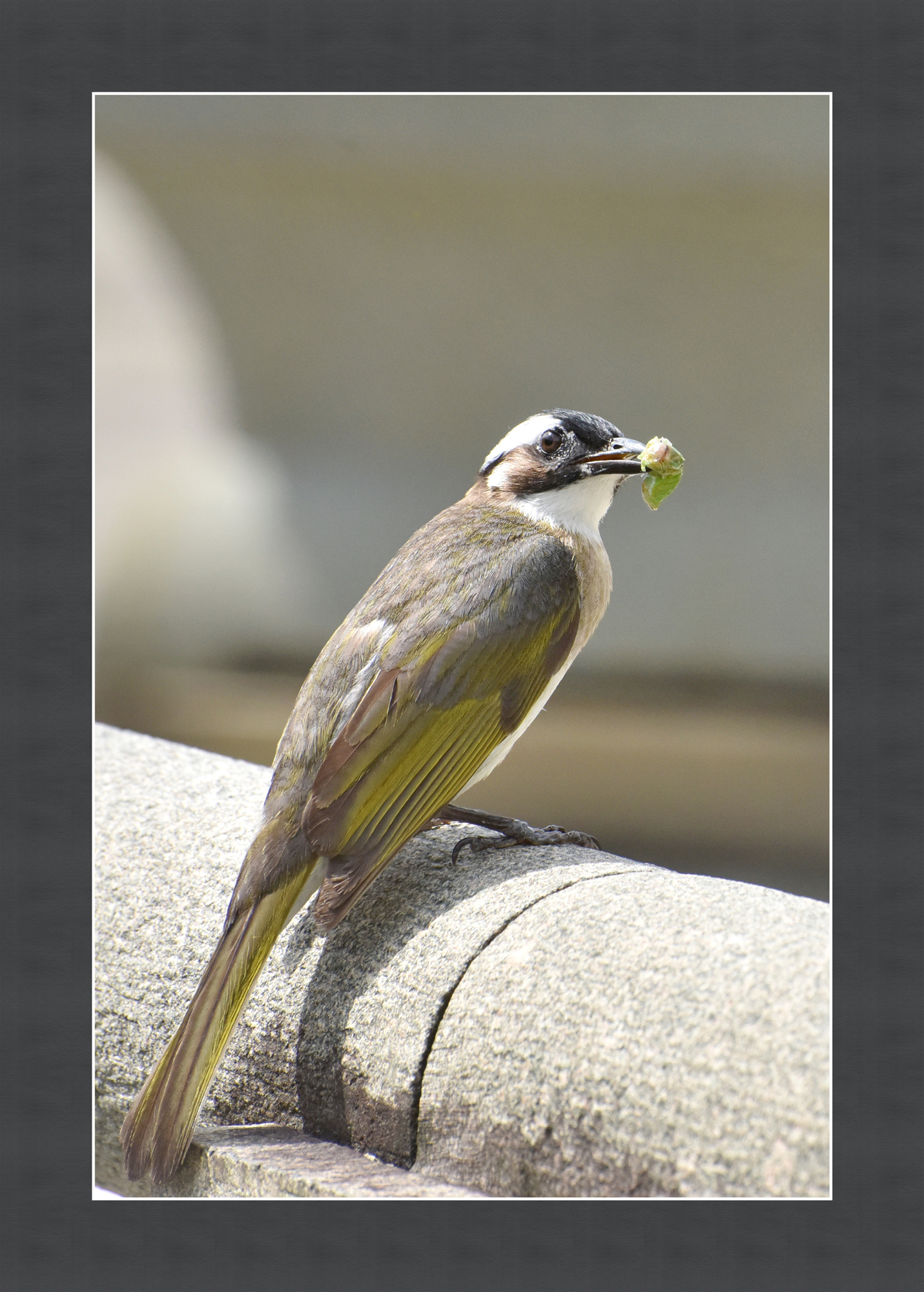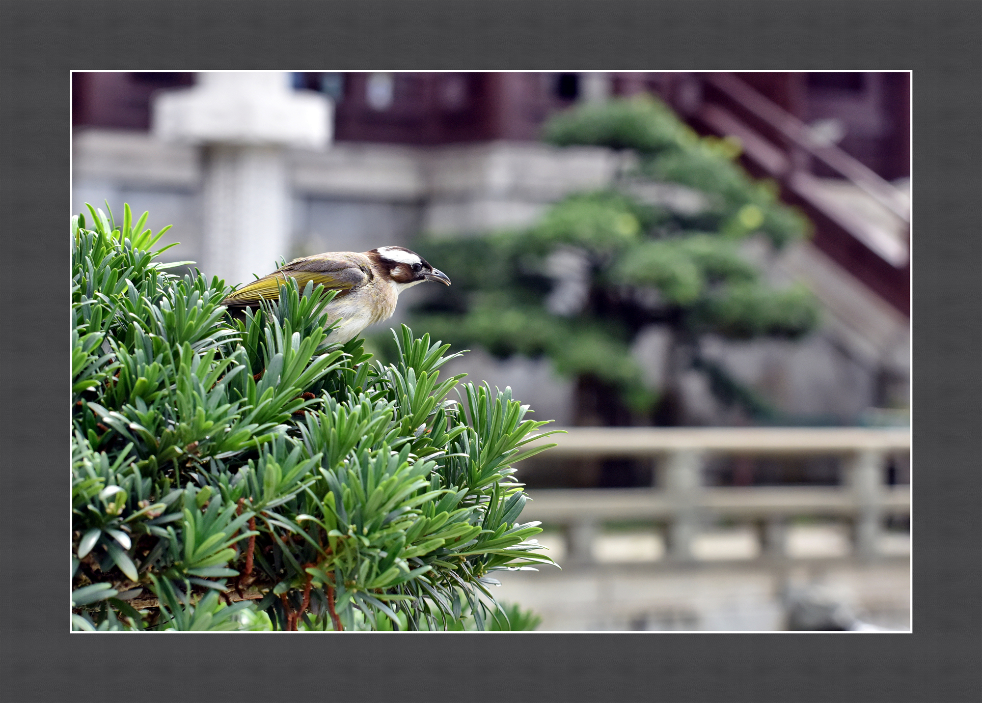 周末在寺院里看到一只白头翁,嘴里叼着虫蛹,停在石栏杆上。 人走近它也不慌张,不飞不跑。为什么? 不一会儿,它不见了。不一会儿,它又出现了,嘴上虫蛹不见了。 人走近它还是不慌张,不飞不跑。为什么? 原来,这里有它的家。
