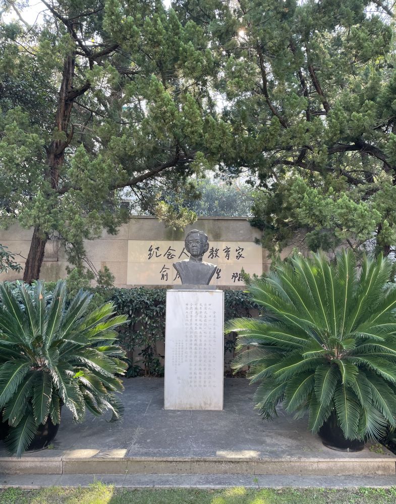 俞老师与我离开树立着俞庆棠胸像雕塑的校园。