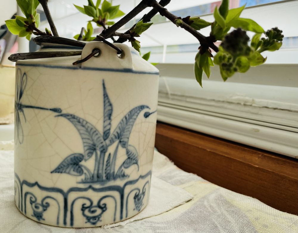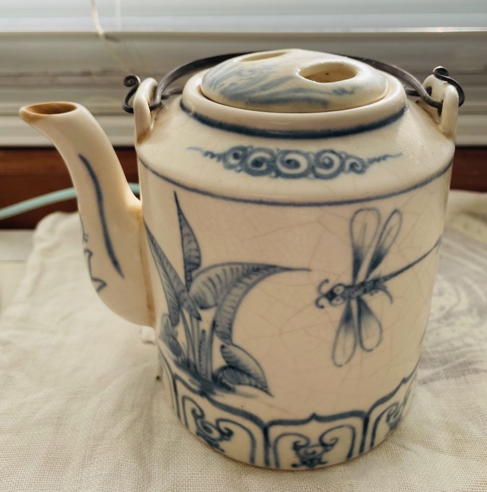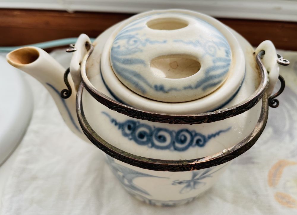 二十多年前我们刚开始逛Yard Sale。我从实用性淘日用品,却淘了第一把茶壶。第一眼觉得是中国风,$2,印象有。那时新移民,花出去每个硬币,都很当心。对在西人家庭摆出来的中式器皿,有他乡遇故知的亲切感。
