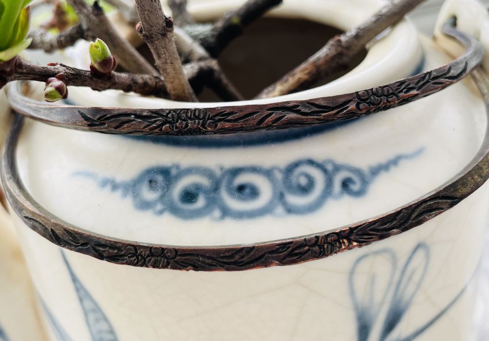 给AI评论。被告知它不是“日本”的,是百年前中国外销英国的茶壶,但是又在伯明翰被当地匠人改了把手,加入西式铜把手,印刻花纹是西式的。这样更符合中产品味。