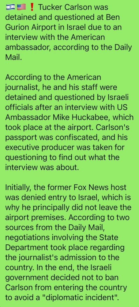 以色列不装了,直接对美国知名右翼保守派独立调查记者 Tucker Carlson 下手了!