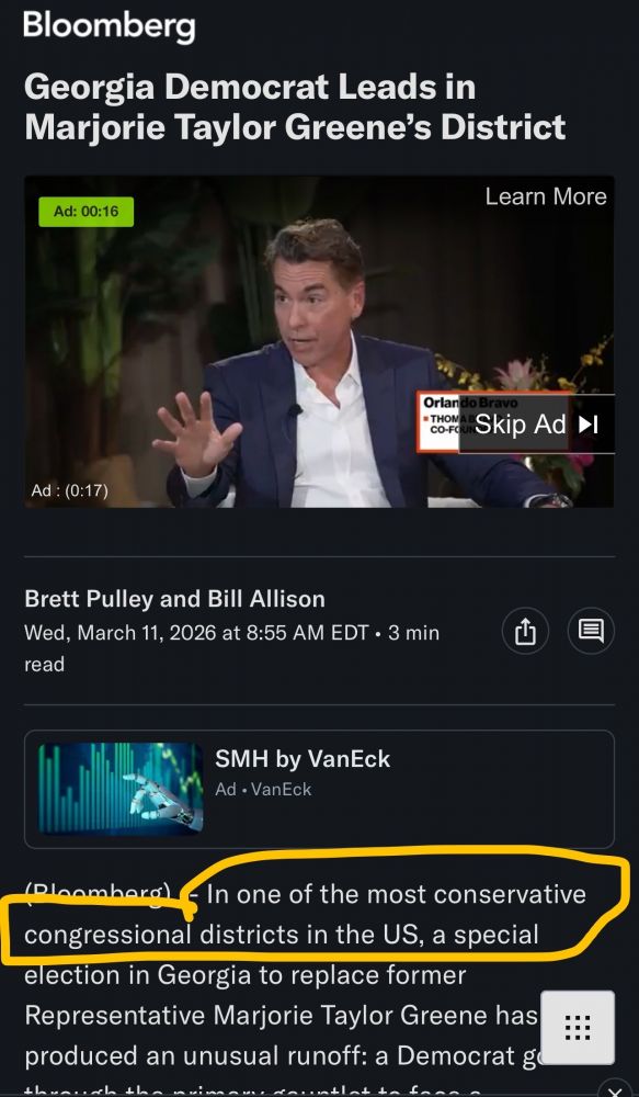 MTG所代表的选区,是美国最保守的选区,没有之一。在这个MAGA选民的大本营,民主党候选人Harris竟然以37%领先川普背书的共和党候选人Fuller的35%,极有可能在runoff中胜出,取代MTG的席位。