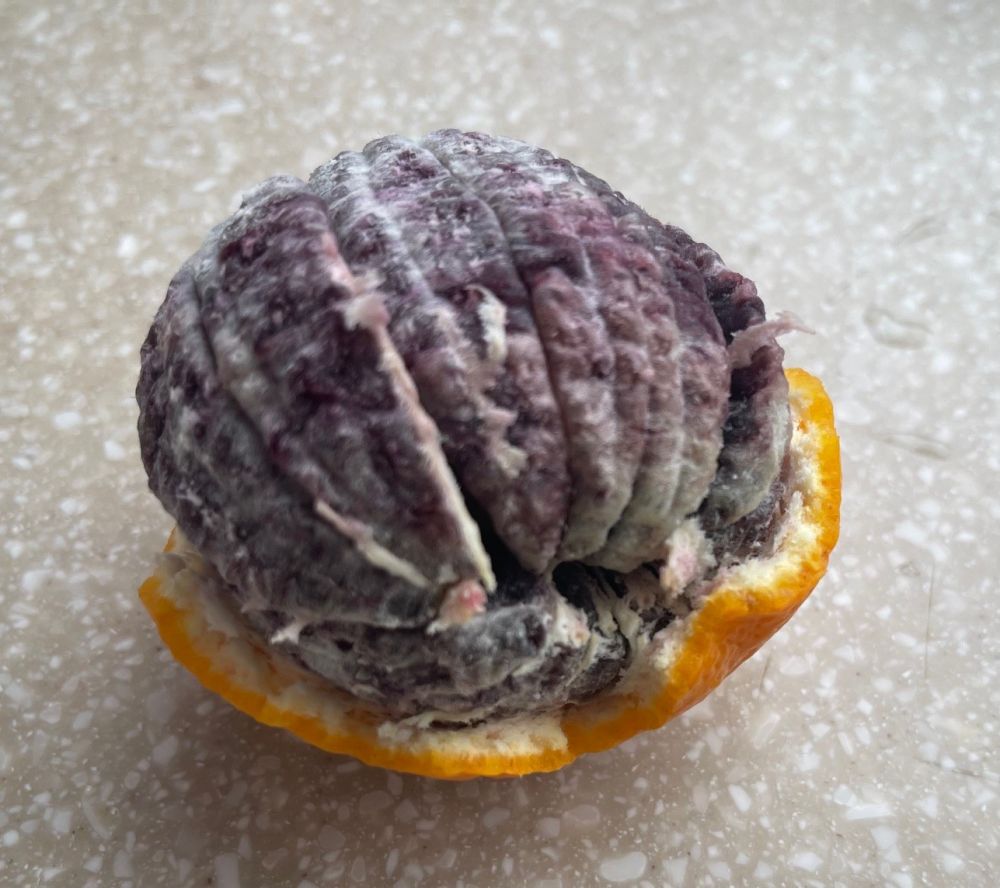 昨天从 shoprite 买了一袋儿加州出产的 raspberry orange,剥开一个后,吓得我汗毛都竖起来了。