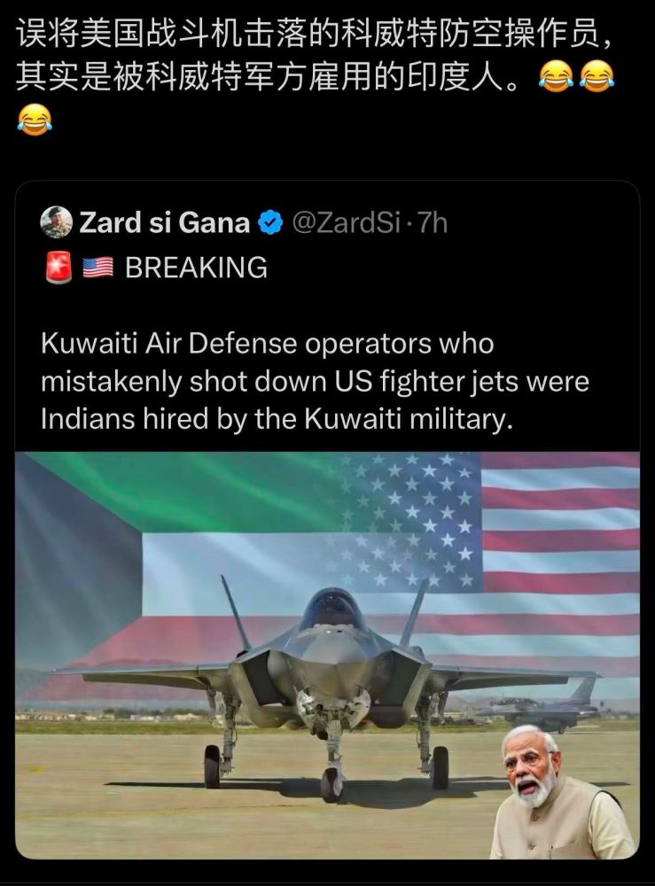 论重创美军,三哥第一,伊朗第二。这,让俺想起不久前印巴冲突,法国最先进的阵风战机,被三哥玩成了羊脚风,“刚买的飞机被打了”,而且也是被打下了三架。