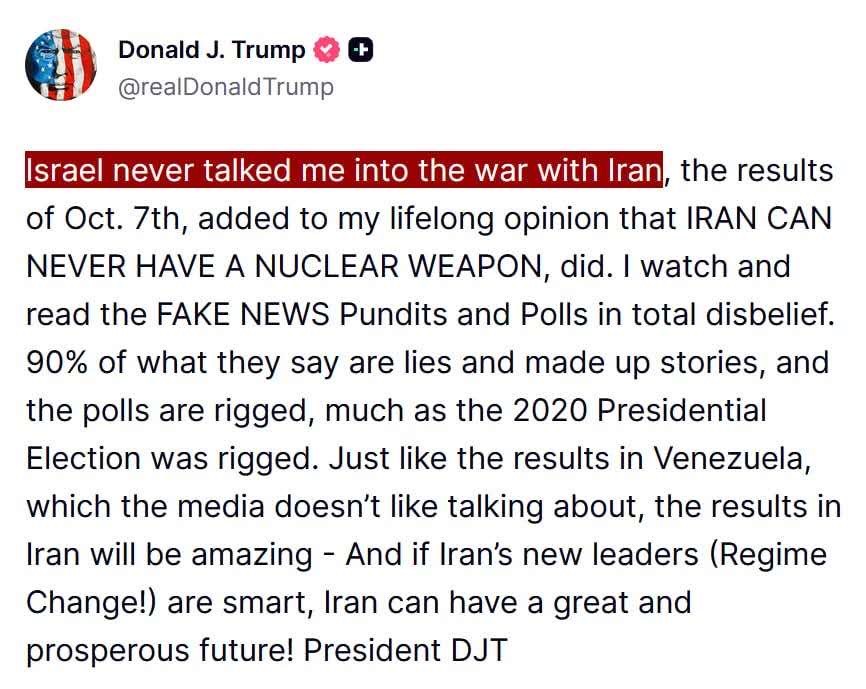 老川又双叒在半夜三点多发推,墙裂声明他没有被内躺夜壶操纵,更不是以色列的傀儡。打伊朗,完全是他自己拍脑瓜想出来的。