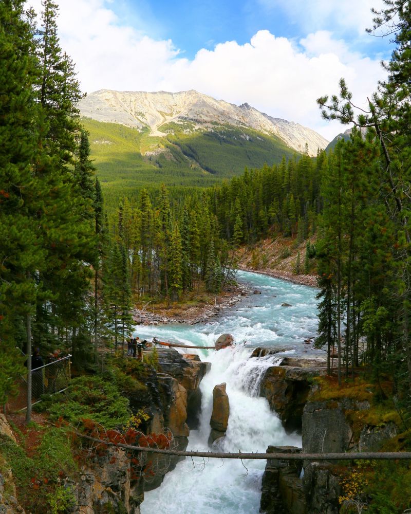 到Athabasca Falls之前会经过另一个瀑布,Sunwapta Falls。