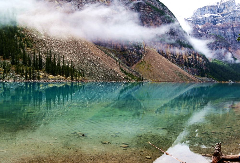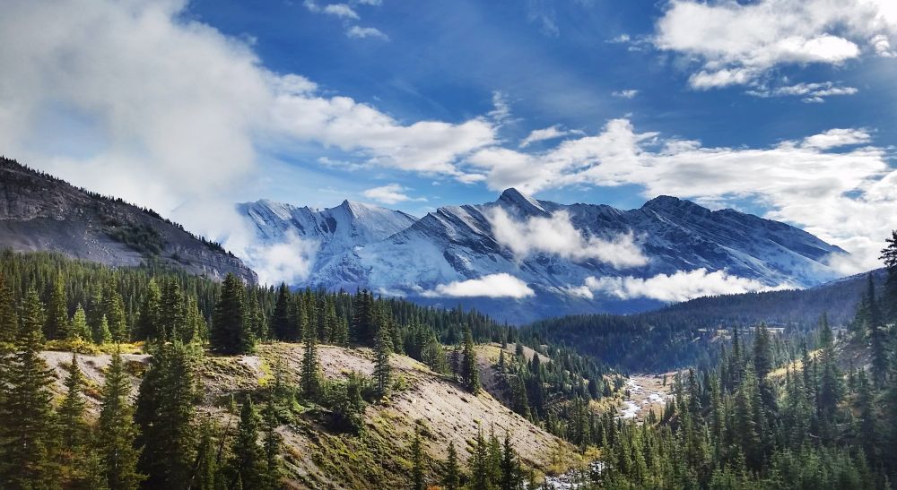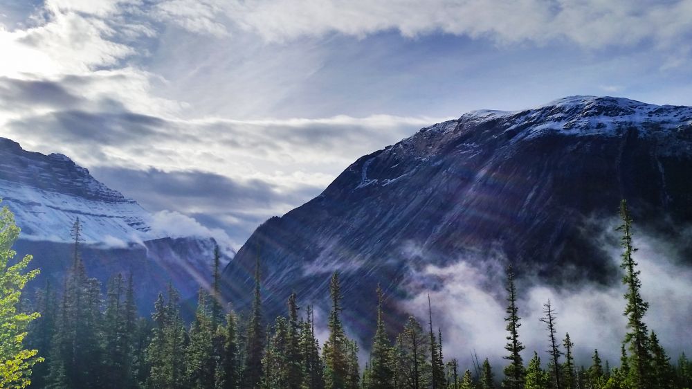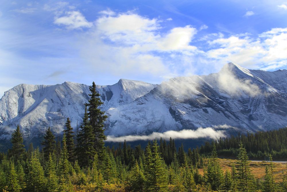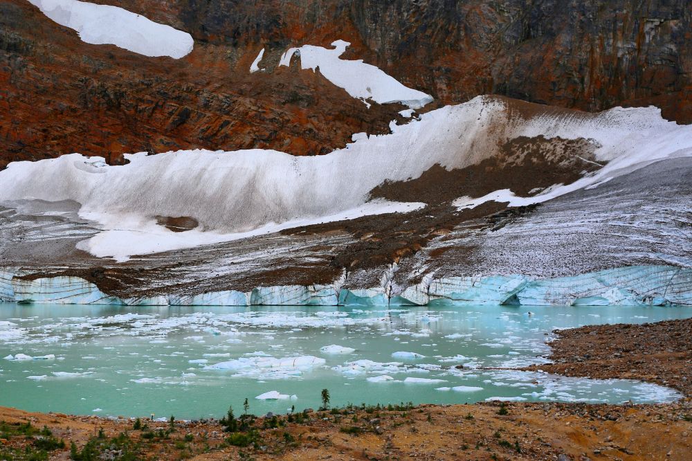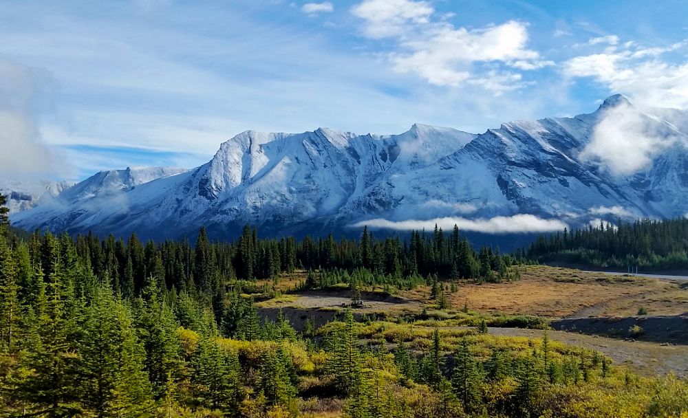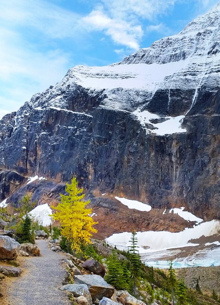 九月初,班芙地区已经开始下雪了,我们到的前一晚刚刚下过雪,冰山顶上覆盖着一层薄薄的新雪。