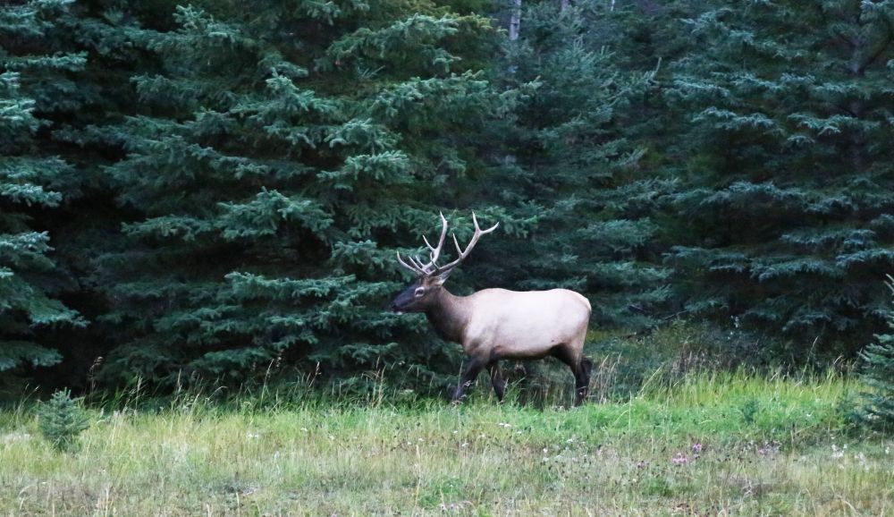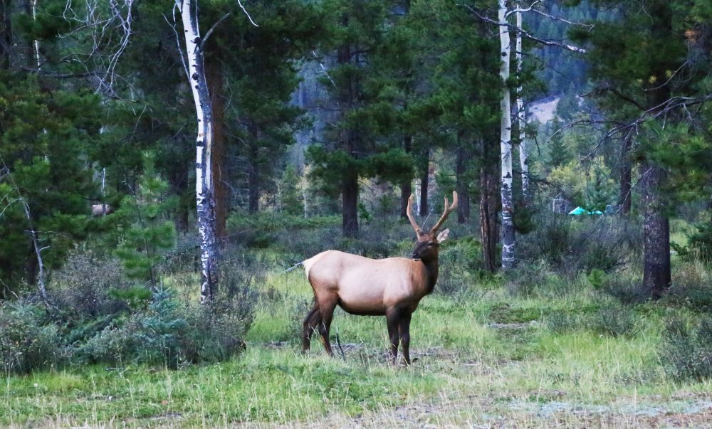 在进Jasper Town之前还在马路边碰上了一只觅食的Caribou驯鹿和一只过马路的Elk麋鹿。果然写游记的前辈们都是对的,在Jasper里看见动物的概率比Banff大多了。。。