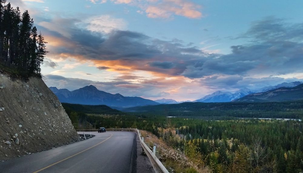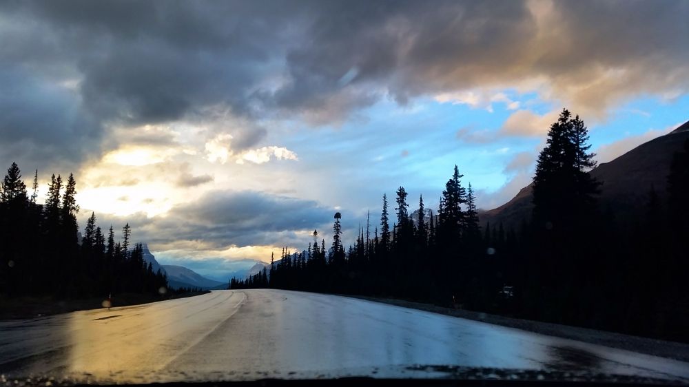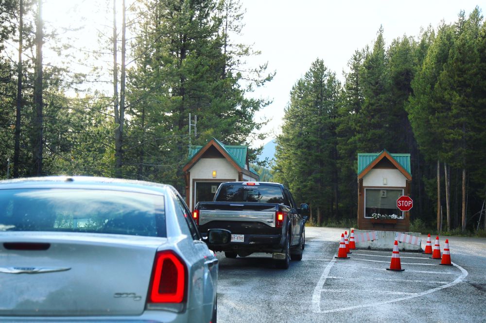 离开Johnston Canyon已经是下午点6过了,抓紧时间一路往Jasper的方向赶。进入Icefield Parkway前还有一个收费处。收费亭在路边,路中间被拦住,所有经过车辆都必须到收费亭前绕一圈,这时有公园门票的就不用再买票了。排队的人不多,不知是因为时间较晚,还是Jasper没有班芙那么出名的原因。