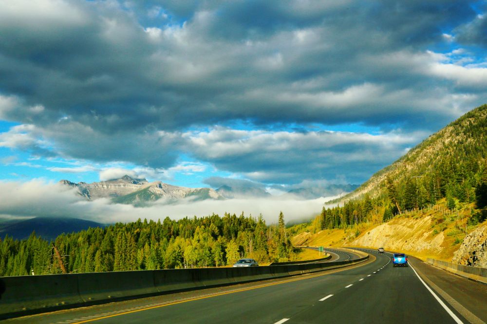 出了Banff Town,沿着早上没走过的那一段1A公路开到Johnston Canyon。这时的1A公路比早上亮了一点点,河水还是缺色彩。。。