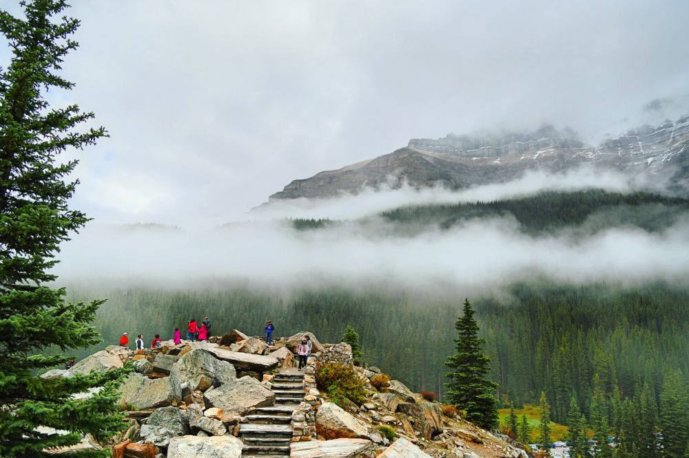 没想到一路上却越走越阴,过了Banff Town以后更是再次乌云压顶,看来在露易丝湖等一个晴天还真是不容易。不知道那些摄影师为了一张照片等了多久,又或许是我们这一次的运气实在太差。