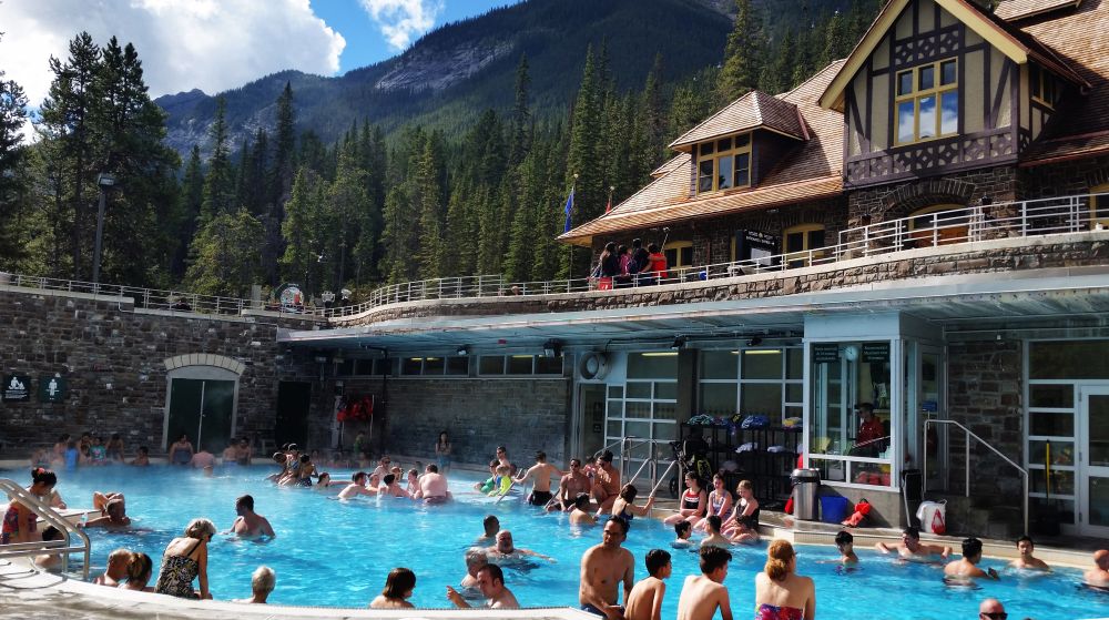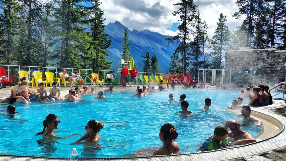 而现在就趁着Banff天晴,回到Banff Town,把之前没时间去的景点走一遍。首先想到的当然就是头天晚上遗憾没能成行的温泉之旅。