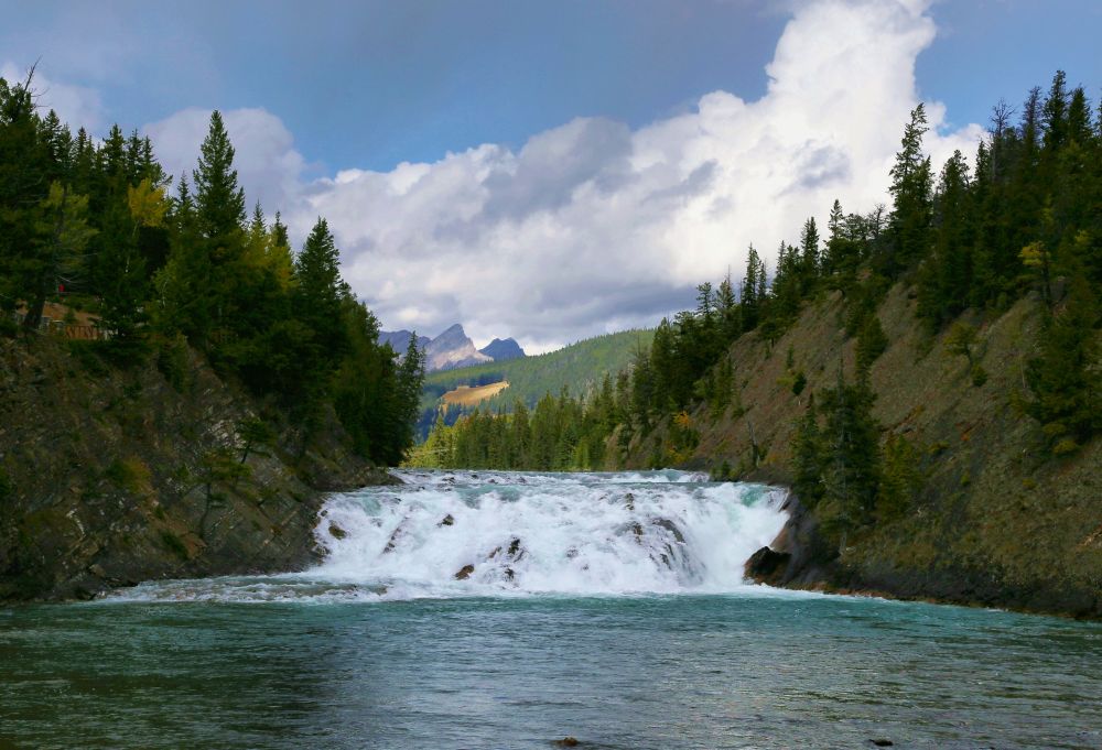 从温泉出来,沿途又开车去了之前没去到的Bow Falls下游,和对面山上走到一半就回头的Surprise Corner。在下游看弓河瀑布,确实比从山顶看气势大了一些,不过个人还是觉得也不算太有特色,感觉和其它瀑布也差不多啊。