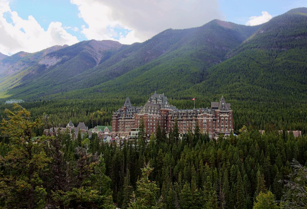 之后我们开车去昨天没走到的Surprise Corner。来到Surprise Corner时才发现,这里根本不是看瀑布的地方,而是看对面山上的Fairmont班芙温泉酒店。我当时心中想的是,这真的不是酒店修来给自己打广告的地方吗?