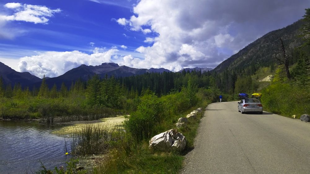 在Castle Junction的时候突然看见前往1A的路牌,想起之前在Banff Visitor Center时有人介绍过说这一路的风景很漂亮,既然也不用赶时间看日出了,我们干脆离开了1号公路准备顺着1A一路开往Lake Louise。