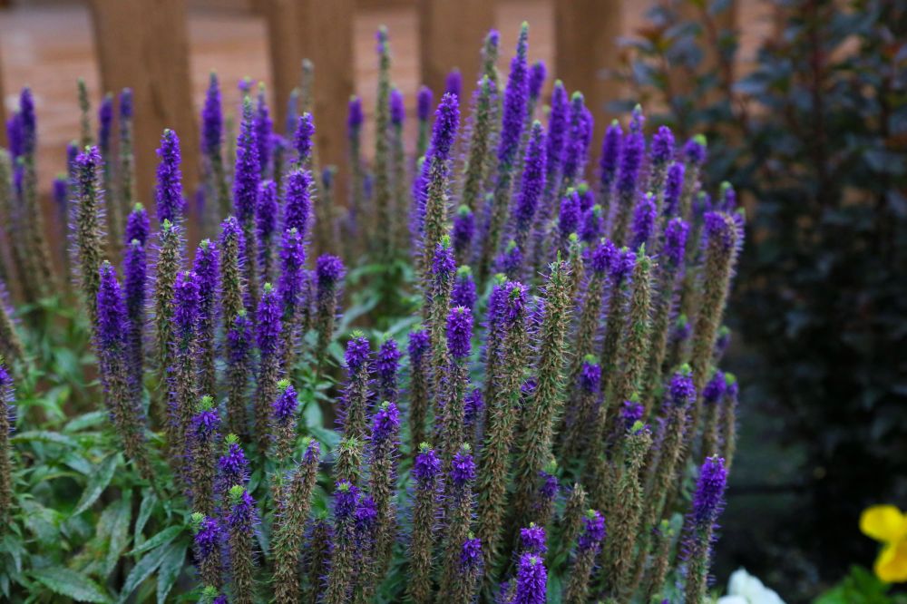 路边有一条小路通向湖边,路上的野花姹紫嫣红。