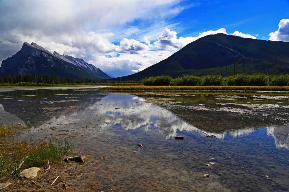 Vermillion Lakes是由很多个小湖组成的,靠近大路这边的湖水要充盈许多,至少看上去是个湖而不是沼泽。