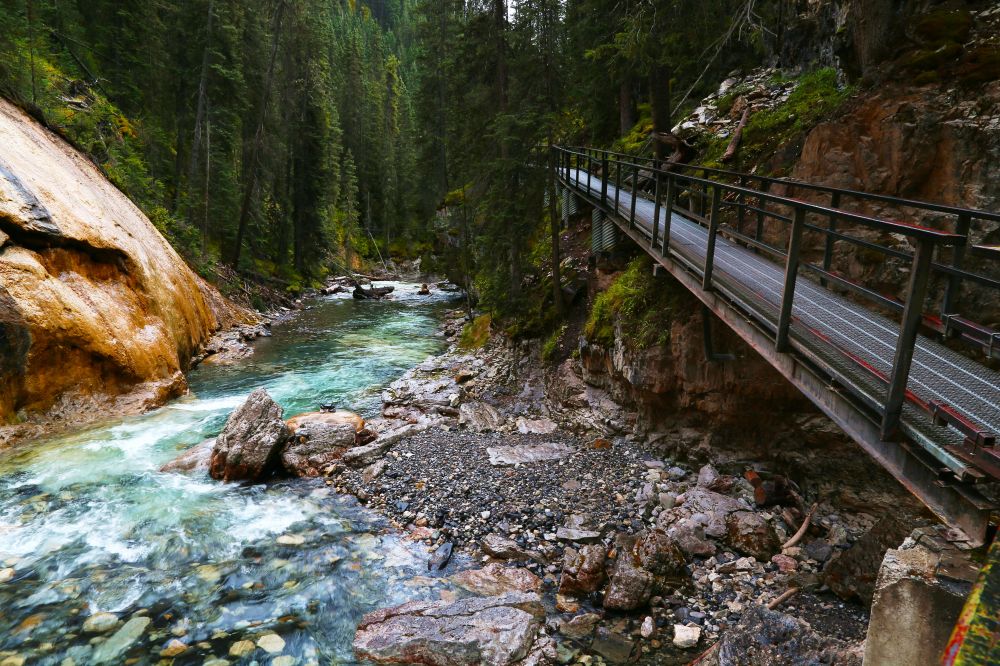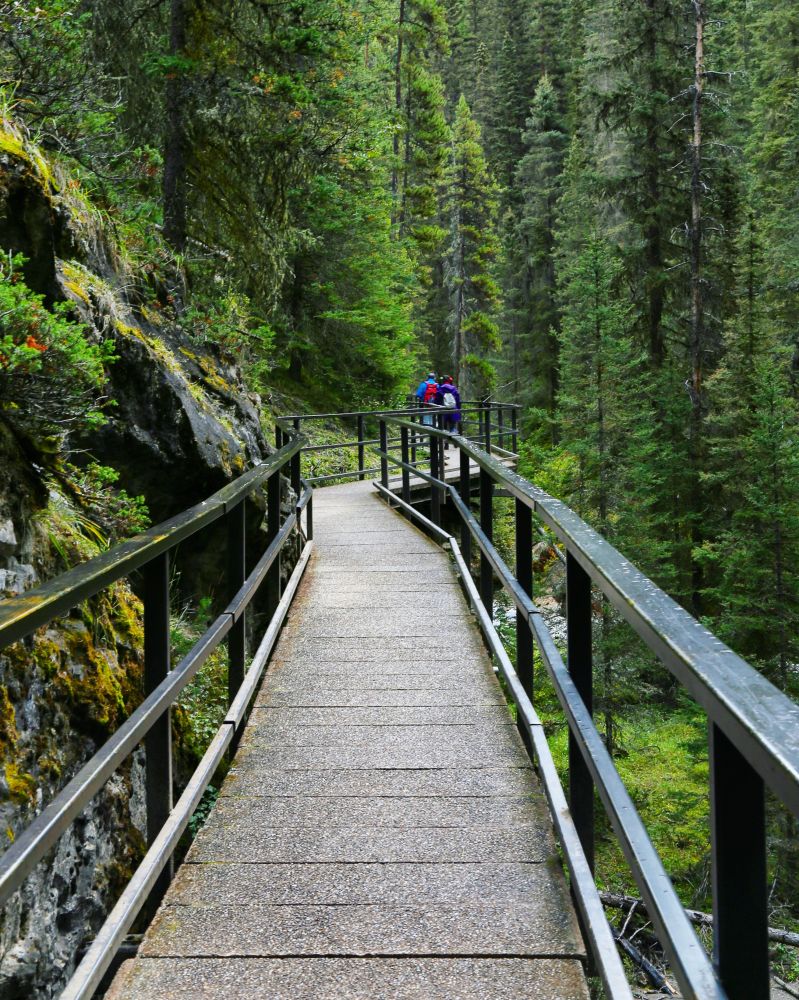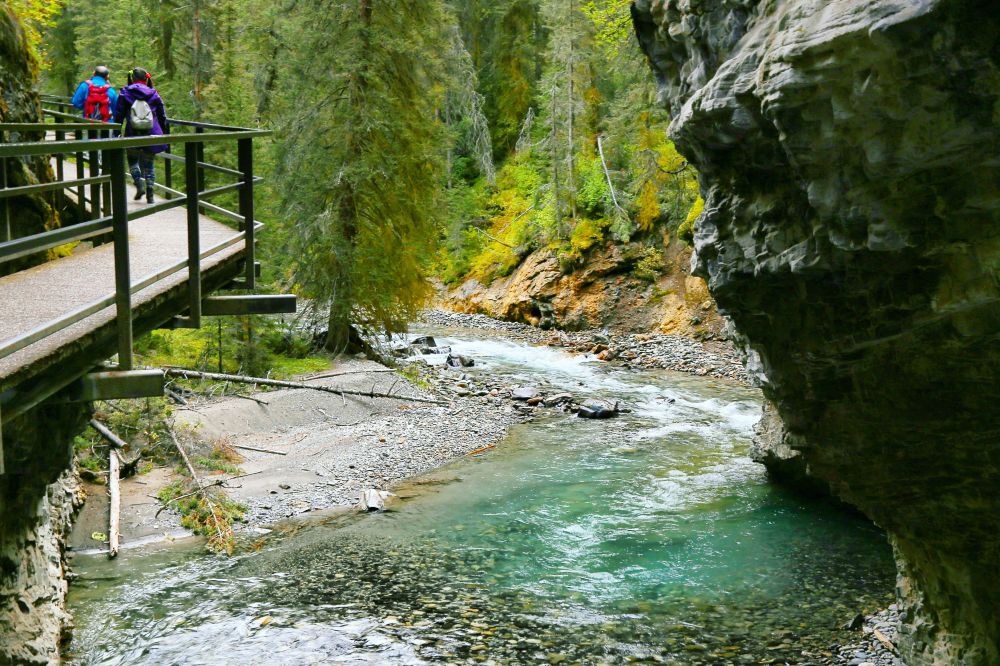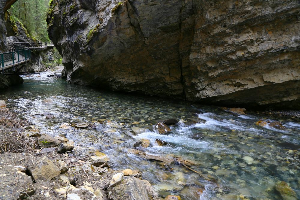 Johnston Canyon算是Banff景区里的四大Canyon之一。峡谷较宽,可以顺着河道在峡谷里面行走,沿途有两个瀑布,Lower falls和Upper falls。走在峡谷里,其实感觉有一点像美国纽约州五指湖边的Watkins Glen State Park里面的峡谷风光。