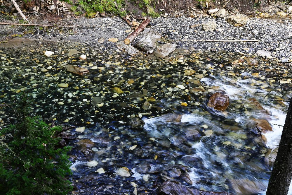 河床上全是黑白相间的鹅卵石,好像一盒混在一起的黑白围棋子。
