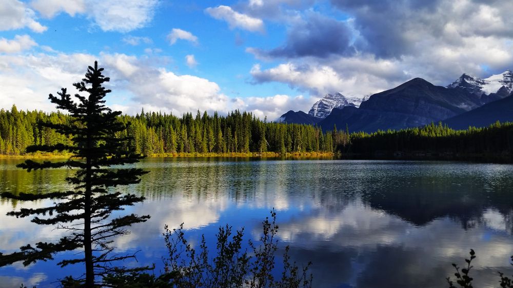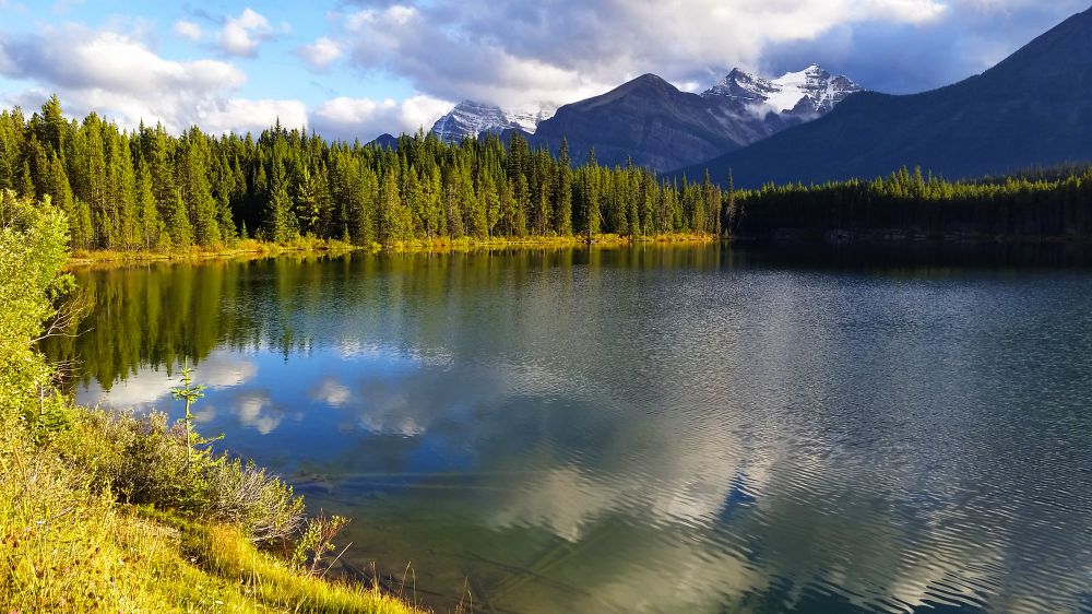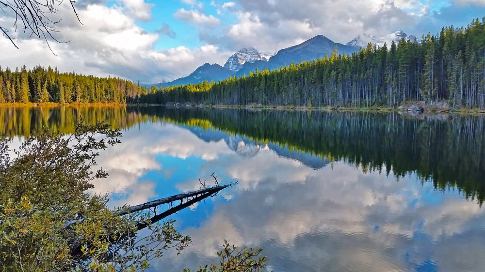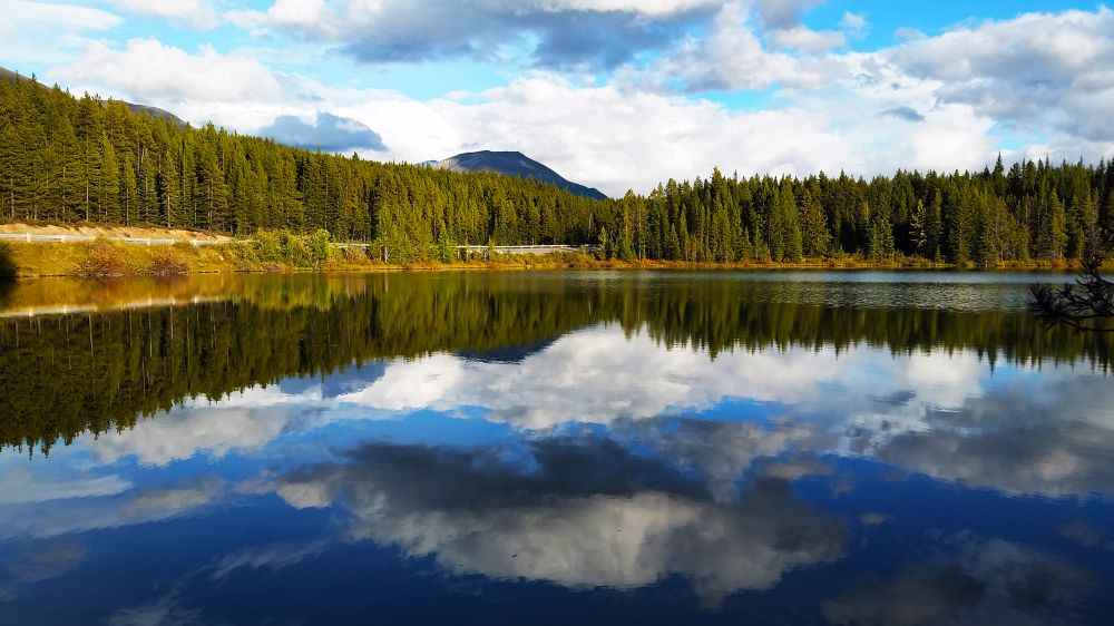 正式进入冰原大道后不远处就有第一个景点,Herbert Lake。正值黄昏时分,天气晴朗,风平浪静,光线倒影完美结合,展现出了Herbert Lake最美的样子。